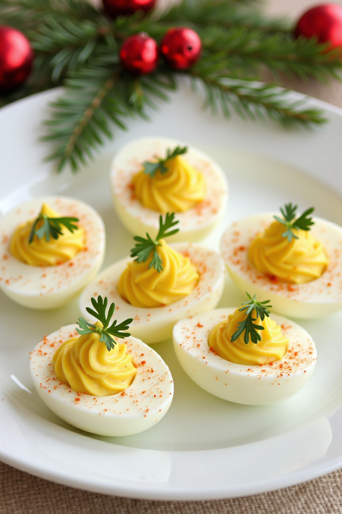 With their silky-smooth yolk filling and cheery garnishes, these deviled eggs stand out as a holiday favorite. Easy to prepare and visually stunning, they add festive flavor and color to any Christmas celebration.